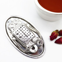 อุปกรณ์ชงชาสแตนเลสสตีลที่กรองชารูปทรงหุ่นยนต์สุดสร้างสรรค์พับได้สองชั้นเครื่องมือโลหะทนทาน